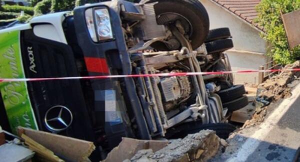 Borghi, camion piomba in cortile: salvo per un soffio il proprietario col cane