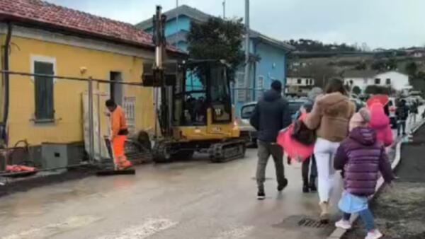 Cantiere davanti alle elementari di Sant'Ermete, genitori costretti allo slalom tra camion e autobus