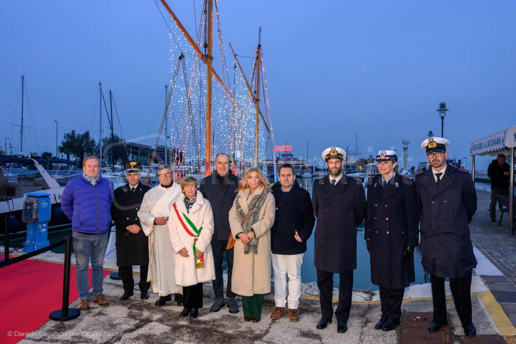 L’accensione dell’albero è stata preceduta dalla benedizione del tradizionale presepe realizzato a bordo della storica imbarcazione “La Saviolina”, ormeggiata a ridosso del ponte di viale D’Annunzio e simbolo della marineria della città di Riccione, che regala al portocanale un colpo d’occhio emozionante.