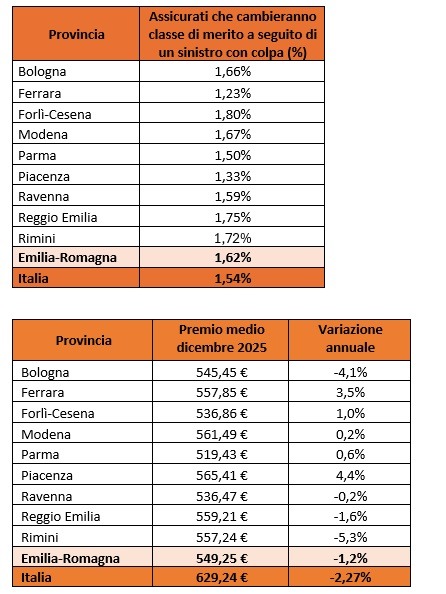 Buone notizie, invece, per gli automobilisti virtuosi; i dati** dell’osservatorio di Facile.it hanno messo in luce che, a dicembre 2025, il premio medio RC auto in Emilia-Romagna è stato di 549,25 euro, in calo dell’1,2% rispetto a dicembre 2024 (588,47 euro).