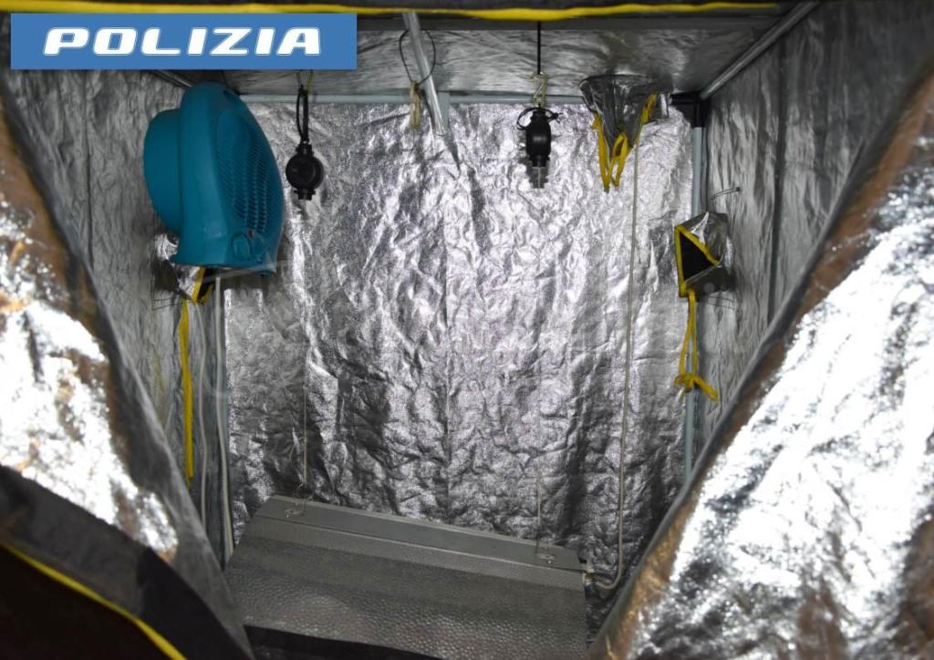 Nella mansarda gli agenti hanno trovato una vera e propria serra per la coltivazione dello stupefacente, con un sofisticato impianto di irrigazione, oltre a impianti di lluminazione, riscaldamento e areazione.