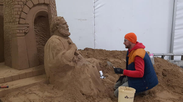 Presepe di sabbia sulla spiaggia di Rimini, ci siamo quasi
