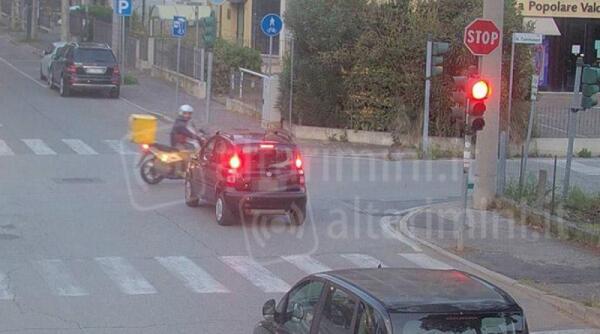 Rimini, auto passa con il rosso e sfiora collisione con lo scooter di un Rider