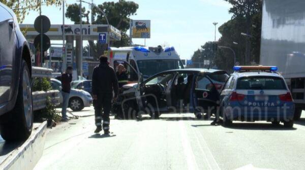 Rimini: scontro tra due auto sulla Statale, traffico in tilt