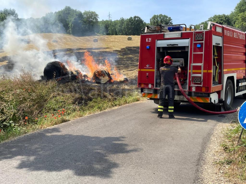 Vigili del fuoco in azione nella tarda mattinata di oggi, sabato 8 giugno, nella zona della Cavallara di Maiolo. Due grosse balle di fieno hanno preso fuoco. Sul posto due camionette dei pompieri ed una jeep. La strada che collega il ponte di Maiolo con quello di Secchiano è chiusa per consentire le attività di messa in sicurezza. Secondo le prime informazioni, nella serata di venerdì alcuni vandali avrebbero dato fuoco ad un’altra balla sempre nella stessa zona. Anche in questo caso sono intervenuti i Vigili del fuoco.