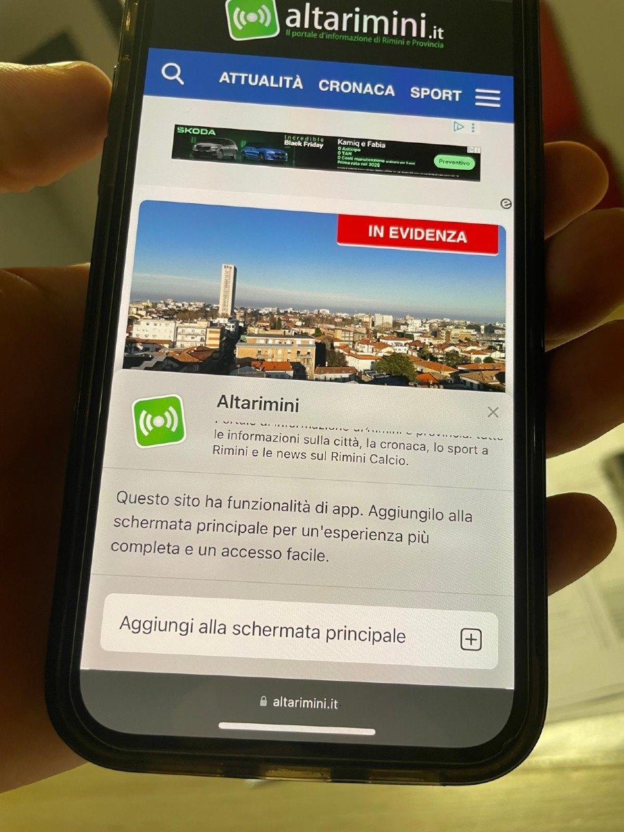 La web app è una versione ottimizzata del sito, installabile direttamente sulla schermata principale di qualsiasi dispositivo Android o iOS, senza passare dagli store. In questo modo, potrete avere sempre a portata di mano le notizie e gli aggiornamenti di Altarimini.it, con una soluzione più leggera e veloce.