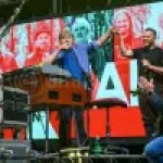 Soffiate le candeline, alle 21,40 è iniziato il concerto terminato poi 40 minuti dopo la mezzanotte. Tre ore in cui i Nomadi hanno proposto i loro grandi successi partendo da Cartoline da qui, poi Ma che film la vita, Contro, a testimoniare l’impegno per la pace, con le bandiere arcobaleno esibite sul palco e le immagini delle devastazioni della guerra sul maxischermo dietro la band. Alla festa non è voluto mancare Mirco Casadei che è salito sul palco e insieme a tutte le migliaia di persone in piazzale Roma ha cantato Romagna mia.