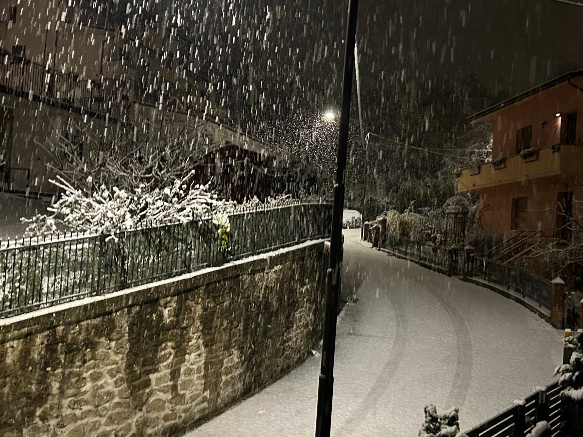 Nel giro di poche ore si è già formato un manto nevoso di alcuni centimetri, sufficiente a trasformare strade e colline in uno scenario tipicamente invernale.