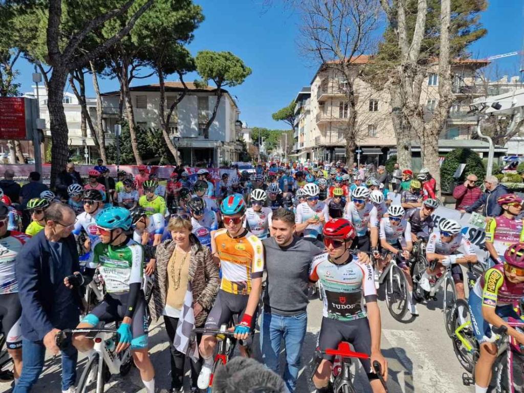 Una piccola folla di appassionati e curiosi ha salutato a mezzogiorno di oggi (mercoledì 20 marzo) la partenza della prima tappa della Settimana internazionale Coppi e Bartali in terra riccionese. I corridori hanno preso il via da viale Dante, in prossimità del Palazzo del Turismo, dove a dare lo start sono stati la sindaca Daniela Angelini, l’assessore allo Sport Simone Imola e il presidente di Apt Emilia Romagna Davide Cassani.