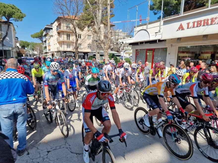 Una piccola folla di appassionati e curiosi ha salutato a mezzogiorno di oggi (mercoledì 20 marzo) la partenza della prima tappa della Settimana internazionale Coppi e Bartali in terra riccionese. I corridori hanno preso il via da viale Dante, in prossimità del Palazzo del Turismo, dove a dare lo start sono stati la sindaca Daniela Angelini, l’assessore allo Sport Simone Imola e il presidente di Apt Emilia Romagna Davide Cassani.