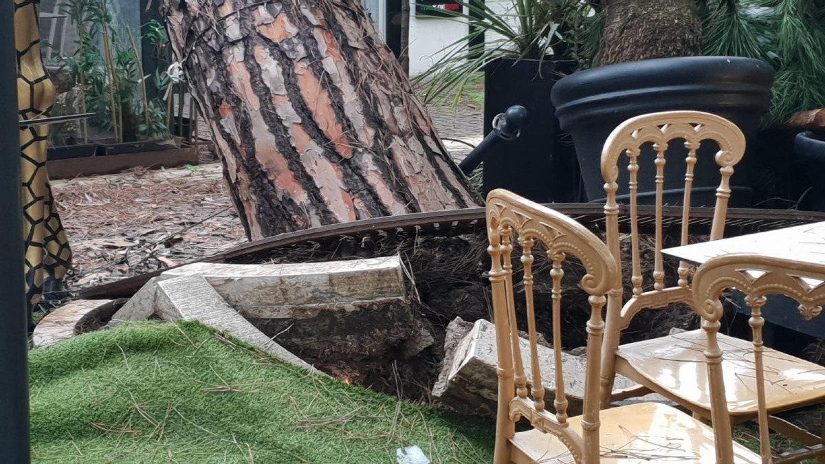 Un vero e proprio smottamento dell'albero che è caduto sul cocktail bar in viale Vespucci: nessun ferito