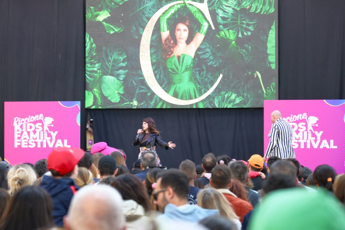 Il weekend pasquale di Riccione è entrato oggi nel vivo: nel pomeriggio, dalle 16.30, piazzale Ceccarini si è trasformato in un grande palcoscenico a cielo aperto per l’anteprima speciale del “Kids Family Festival”. Protagonista assoluta Cristina D’Avena, l’icona intramontabile della musica per ragazzi che ha accompagnato l’infanzia di milioni di italiani.