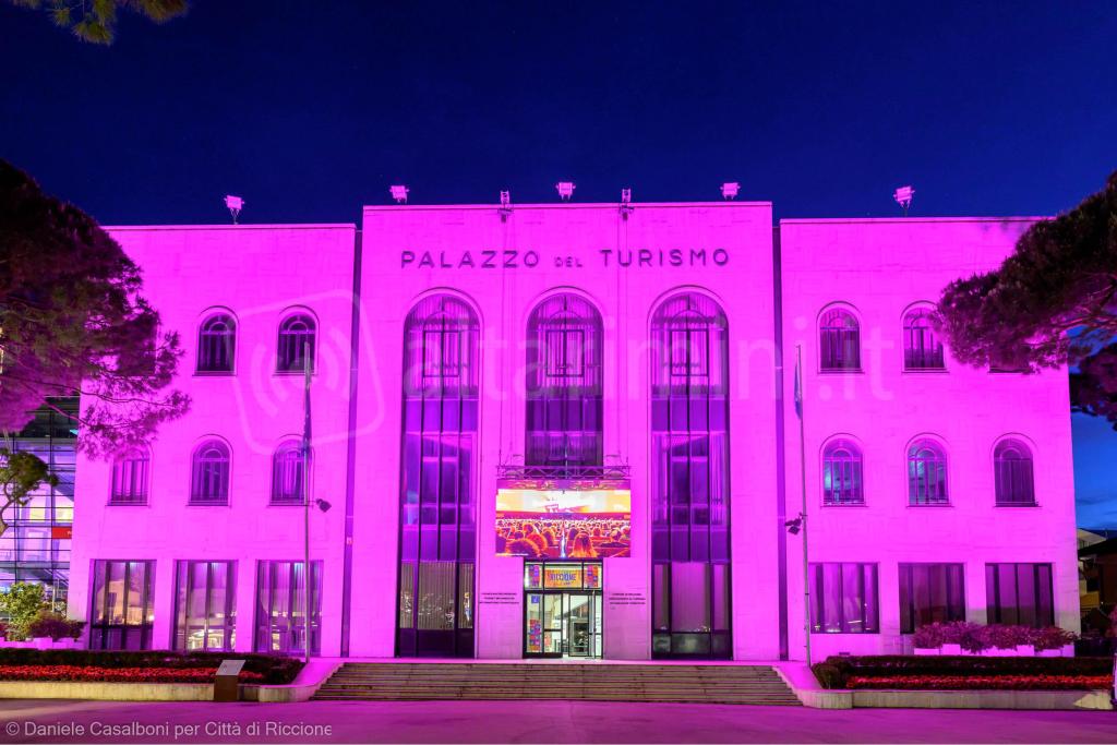 Dalle 20 fino alle 3 del mattino il centro si è illuminato con le sfumature rosa di viale Ceccarini, della fontana del Bosco della pioggia, dei giochi d’acqua che da piazzale Roma accompagnano la passeggiata fino al porto, cui si sono aggiunte le facciate delle ville in stile liberty – Villa Mussolini, Villa Lodi Fè, Villa Franceschi – il Palazzo del Turismo e il Palazzo dei Congressi, e nella zona più a nord la suggestiva fontana del lungomare Goethe. Anche le strade si sono illuminate di rosa, nelle rotonde in prossimità di viale Da Verrazzano e sulla Statale Adriatica in prossimità dell’ospedale (viale Frosinone) e di viale Formia.