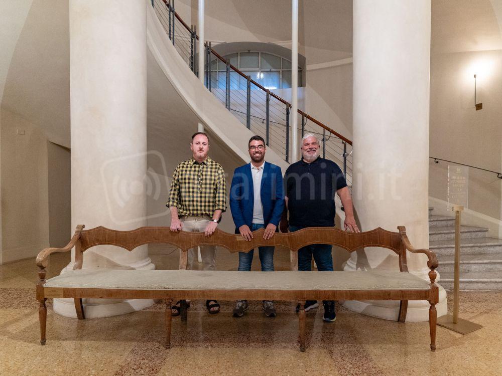 Le antiche panche del Teatro Galli tornano nel foyer grazie alla donazione dell’antiquario riminese Bruno Bernardi e di Giacomo Di Dio