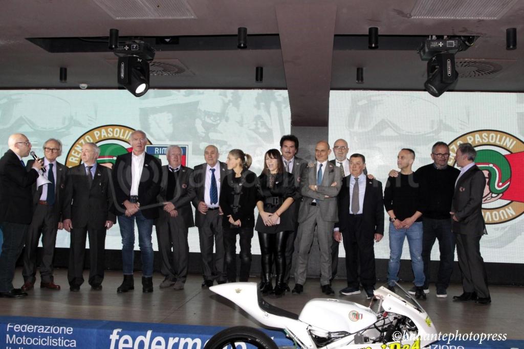 Durante la cerimonia sono intervenuti anche i due piloti di punta del Pasolini, i due campioni nella categoria del Mondiale Moto E, Matteo Ferrari e Mattia Casadei. Una nota particolare riguarda il pilota della Categoria Junior C, Roberto Bartolomeo Francesco del Motoclub Misano, che nel 2023 ha vinto sia il Campionato Interregionale che il Trofeo Marco Simoncelli.