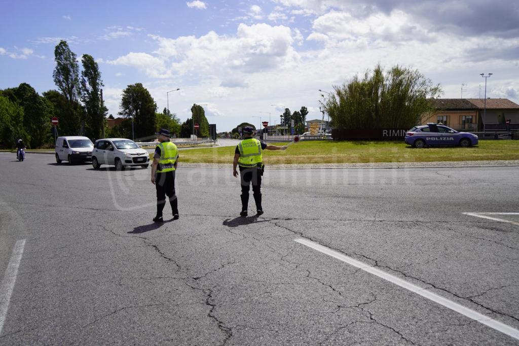 In particolare è stata presidiata, fino al passaggio della fine gara, tutta la statale 16 e la via Emilia, concentrando l’attenzione nei 6 varchi (mare-monte) rappresentati dalle 4 rotatorie – Varisco/Rosmini (rotonda dei Vigili del Fuoco), Covignano, rotonda ‘Valentini’ (accesso quartiere Padulli da via Tosca), via della Fiera/Grotta Rossa – e 2 sottopassi – vie Rodriguez e Marecchiese. Chiuse completamente, come programmato, le due rotatorie delle Befane e di via Coriano.