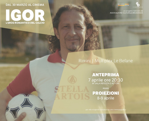 IGOR. L’eroe romantico del calcio, prodotto dall’associazione culturale Bredenkeik, prodotto da Luca Dal Canto e Alberto Battocchi e distribuito da Piano B Distribuzioni, è al cinema in sale selezionate a partire dal 30 marzo e in tour con una serie di proiezioni speciali alla presenza del regista.