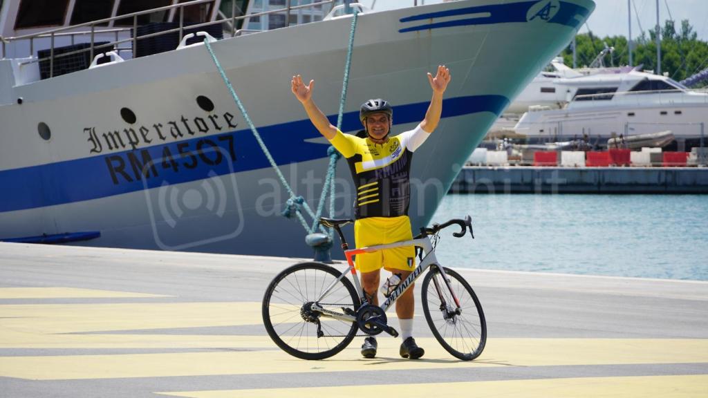 Arriva il Tour de France e il Bagnino d'Italia Gabriele Pagliarani in sella alla bici pubblicizza i luoghi cult di Rimini