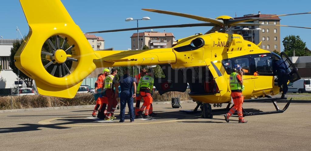 In moto investe una ciclista sulle strisce, soccorsa in elicottero