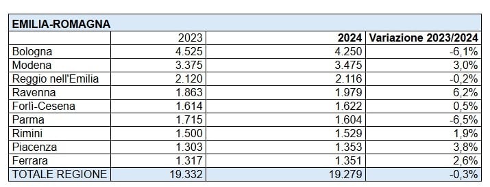 La provincia segna un +1,9% rispetto al 2023, in linea con la tendenza regionale dell’Emilia-Romagna