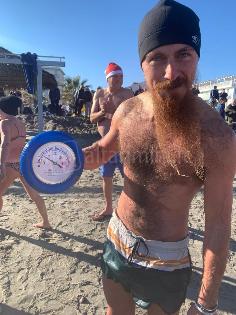 Anche a Torre Pedrera 200 coraggiosi in acqua per il bagno di Capodanno