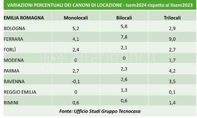 Le ultime analisi dell’Ufficio Studi del Gruppo Tecnocasa registrano che canoni di locazione continuano a crescere: +3,9% per i monolocali, + 4,0% per i bilocali e +3,0% per i trilocali nella prima parte del 2024 rispetto al secondo semestre del 2023.