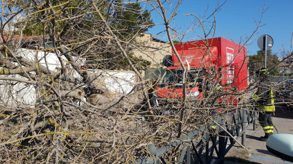 Paura in un parcheggio del centro di Rimini. Un albero di grandi dimensioni è crollato sfiorando il furgone di un corriere. E’ successo nella tarda mattinata di mercoledì 14 febbraio nella zona del parcheggio Scarpetti. Secondo quanto ricostruito il corriere si trovava a transitare nel parcheggio quando la pianta è crollata sfiorando il furgone lato passeggero. Fortunatamente non si sono verificati danni a persone o a mezzi parcheggiati. L’autista del corriere, una donna, ha preso un enorme spavento venendo poi assistita da personale del 118. La zona è stata transennata e sul posto si trovano i Vigili del Fuoco e la Polizia Locale.