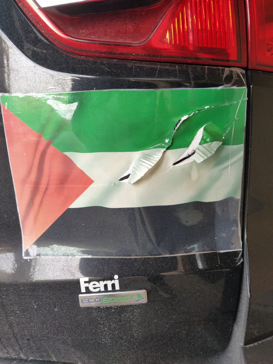 Vincenzo Sebastiani, ex primo cittadino novafeltriese, racconta sui social: "Bandiera palestinese sulla mia auto danneggiata"