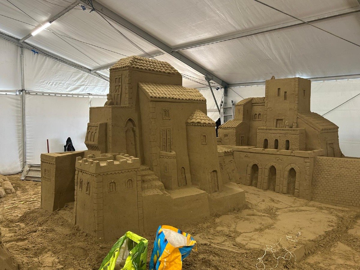 Gli artisti al lavoro sono otto, provenienti da Bulgaria, Spagna, Bielorussia, Russia e Italia, e il gruppo – composto da cinque donne e tre uomini – ha dato vita a un insieme di sculture che unisce tecnica, monumentalità e un forte impatto scenografico. Il percorso è pensato come un viaggio immersivo nella grandiosità del cinema epico, riletto attraverso la delicatezza della sabbia modellata.