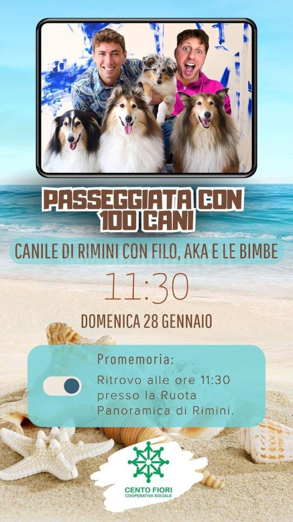 ‘Passeggiata con 100 cani’, è il nome della nuova iniziativa organizzata dal noto youtuber Filippo Capriotti insieme all’amico e collega AKA (Federico Angelico) e con il sostegno della cooperativa sociale Cento Fiori: più di una passeggiata, ma un vero e proprio connubio tra divertimento e amore per gli amici a quattro zampe, in programma domenica 28 gennaio, a partire dalle ore 11:30, con ritrovo in piazzale Boscovich.