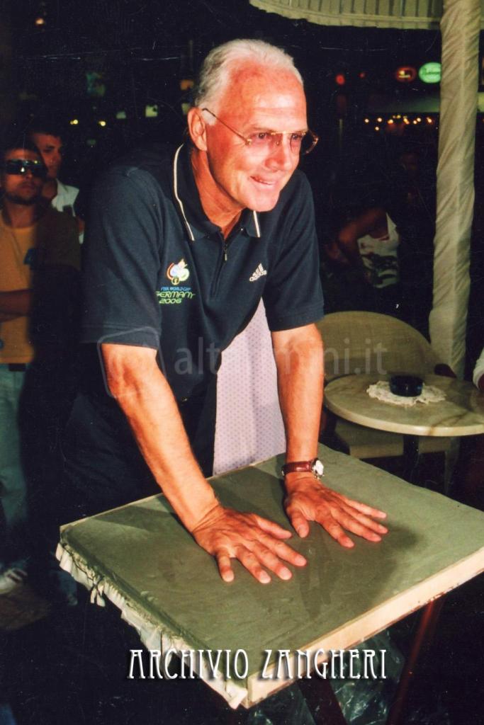 Riccione ricorda con affetto Franz Beckenbauer, il mito del calcio tedesco e mondiale scomparso domenica a 78 anni, amico speciale della città. Il legame fra Riccione e il grande difensore e allenatore risale al lontano 1968, quando Beckenbauer vi arrivò in vacanza con la sua famiglia per la prima volta per poi farvi ritorno nel 2004 insieme all’imprenditore tedesco Rudolph Houdek, che ricevette le cittadinanza onoraria. Da lì a poco la Germania avrebbe ospitato i Mondiali di calcio del 2006 vinti dalla Nazionale italiana allo Stadio Olimpico di Berlino. A Riccione, nell’estate del 2004, il “Kaiser” – che il Mondiale lo aveva vinto prima da giocatore e poi da allenatore a Italia ‘90 – arrivò in qualità di presidente del comitato organizzatore dei Mondiali per la promozione del grande evento sportivo e per incontrare le migliaia di tedeschi che affollavano le spiagge riccionesi. Quell’occasione fu una grande festa per la città e venne accolto con grande calore dall’allora sindaco Daniele Imola e dal consiglio comunale. Una grande festa a base di piadina e “rustida di pesce” venne organizzata – con la collaborazione dei bagnini – per Beckenbauer, Houdek e i turisti tedeschi in piazzale Roma, salutati dai fuochi artificiali sul mare. In occasione della visita il grande campione lasciò l’impronta delle sue mani sul calco in gesso, segno indelebile del legame con la città.