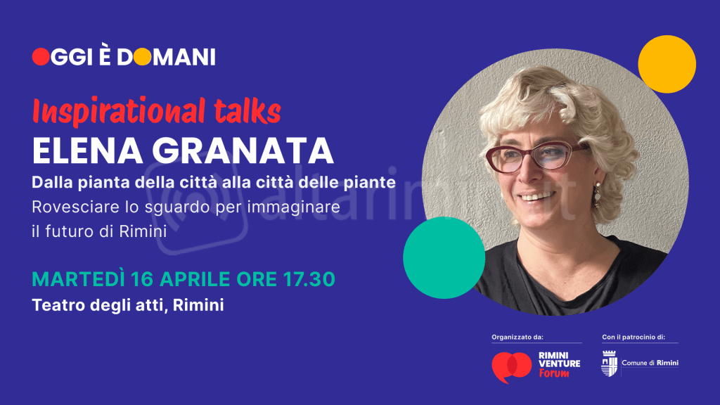 Martedì 16 aprile al Teatro degli Atti la prima inspirational talk con Elena Granata, la docente di urbanistica del Politecnico di Milano. “Dalla pianta della città alla città delle piante. Rovesciare lo sguardo per immaginare il futuro di Rimini” il titolo dell’incontro.