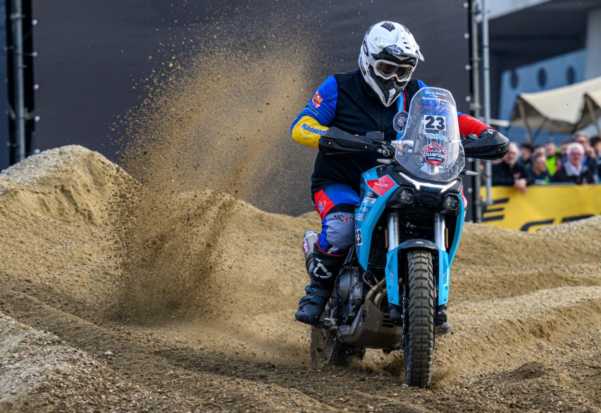 La sua performance, intensa e coinvolgente, gli è valsa la vittoria nella prima gara eliminatoria del venerdì. Un risultato ancora più significativo considerando che anche in questo caso la moto era una T502X al 99% stock.