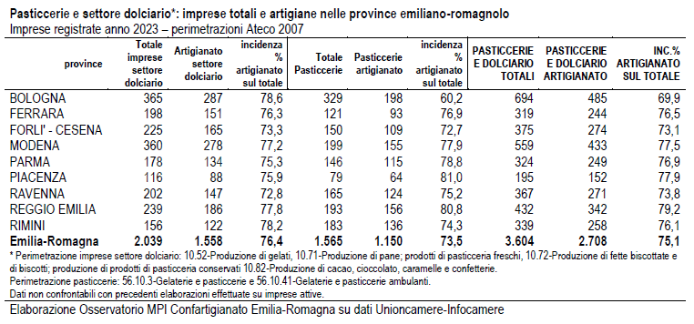 Nella settimana di Pasqua salgono alla ribalta i consumi dei prodotti della tradizione e in particolare quelli del comparto dolciario, settore ad elevata vocazione artigianale. In Emilia-Romagna sono interessate dai consumi tipici dei prodotti pasquali oltre 3 mila pasticcerie e imprese del settore dolciario – comparto che include pasticceria fresca, gelati, biscotti, cacao, cioccolato, confetteria, etc. – con una alta vocazione artigianale: sono 2.708 le imprese artigiane, rappresentando il 75,1% delle imprese totali del settore. Maggiore presenza di pasticcerie e imprese del dolciario artigiane nelle province di Reggio Emilia (79,2%), Piacenza (77,9%) e Modena (77,5%).