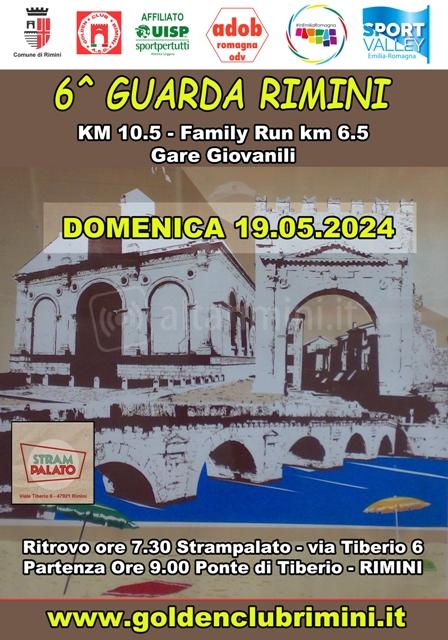L’evento 6^ Guarda Rimini nonché 25° Golden Fest in programma domenica 19 maggio si svolgerà nel cuore di Rimini toccando il Ponte di Tiberio, l’Arco d’Augusto, il Parco del Mare, il Grand Hotel di Rimini, la Ruota Panoramica, la Darsena e il lungo fiume degli artisti prima del traguardo all’ombra del Ponte di Tiberio.