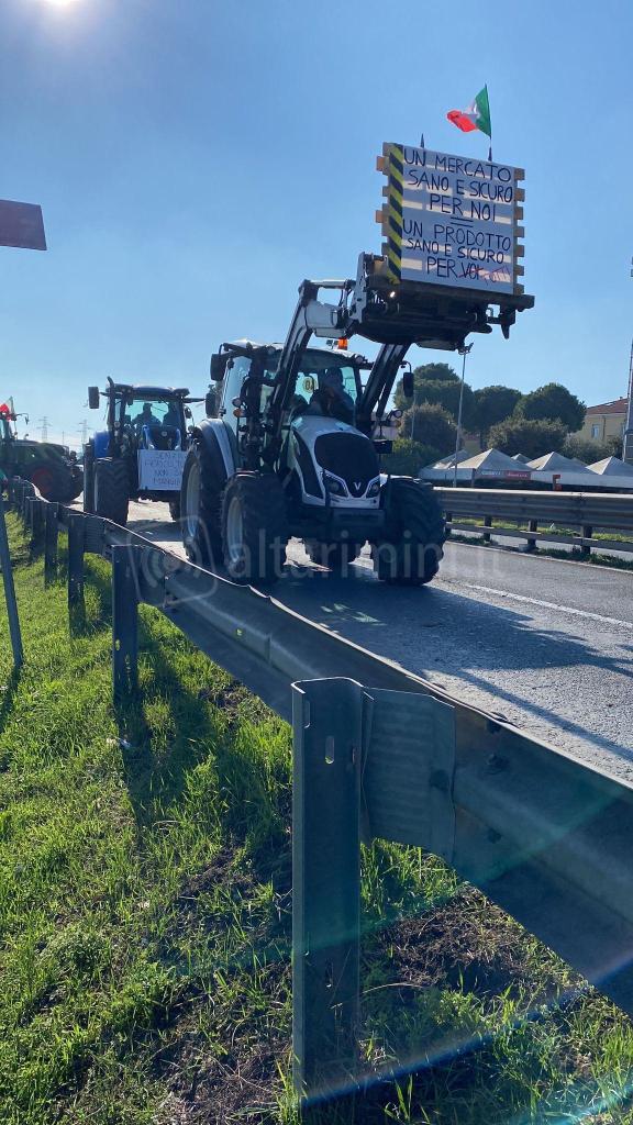 Gli agricoltori hanno poi percorso la statale con un tragitto più breve rispetto a quello di ieri