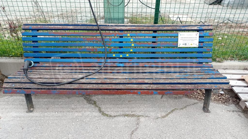 Rimini, rimessa a nuovo la panchina con colori e logo dell'Unione Europa -