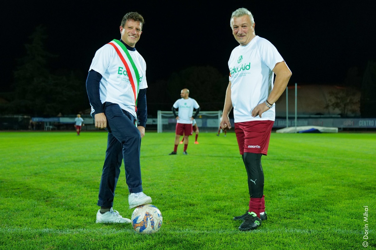 Educaid riceverà a dicembre il Sigismondo d'oro, al teatro Galli di Rimini, un riconoscimento ai tanti progetti che l'associazione porta avanti "In Paesi del mondo in cui guerra, povertà, dolore ne funestano presente e futuro", utilizzando le parole del sindaco di Rimini Sadegholvaad nell'annuncio dato alla stampa oggi. E favore dei progetti umanitari di Educaid nella striscia di Gaza è andato il ricavato dalla partita benefica di ieri sera (lunedì 27 ottobre) che si è disputata allo stadio Mazzola di Santarcangelo. In particolare, serviranno a finanziare “scuole-tenda” da installare nei campi di sfollati, come quelli di Deir el-Balah e Al-Zawayda, che accolgono ogni giorno centinaia di bambini tra i 6 e i 12 anni che hanno perso la loro casa e la loro scuola. Così cantanti e musicisti del territorio, con qualche "autorità" infiltrata in campo, si sono dati sportivamente battaglia al Mazzola. A prevalere sono stati i cantanti, gli Autotuners, contro i musicisti, gli Orchestrales, al termine di una bella partita conclusasi sul punteggio di 4 a 3, con il cantante Cricca in evidenza. In campo, tra i cantanti, è sceso anche il Vescovo Nicolò Anselmi, che alla fine della partita ha alzato il trofeo. La serata, presentata da Andy Macfarlane dei Mutoid e Annalisa Teodorani, ha avuto tre telecronisti e "bordocampisti" di eccezione: Valentino Berti di Radio Gamma, Alice Parma e Fabio Caldari. Sugli spalti circa 500 persone, per un ricavato, tra ingressi a offerte libera e le sponsorizzazioni, di 3159 euro.