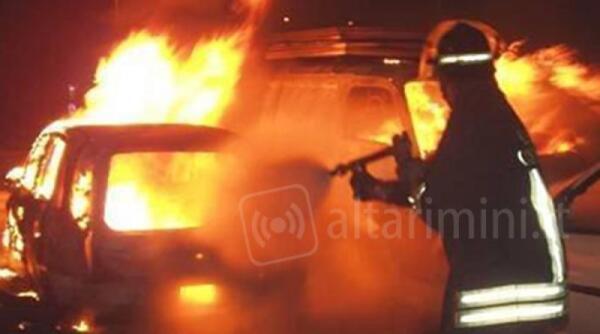 Rimini, auto a fuoco nella notte in zona Celle, probabile incendio doloso