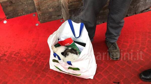 Cuccioli in un sacchetto in piazza Cavour, recuperati e consegnati alle cure del canile