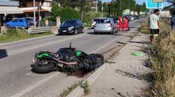 Si toccano in moto e finiscono a terra, rocambolesco incidente a Miramare. Feriti due giovani