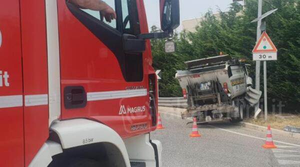 Camion della raccolta rifiuti va dritto alla rotonda, illeso il conducente