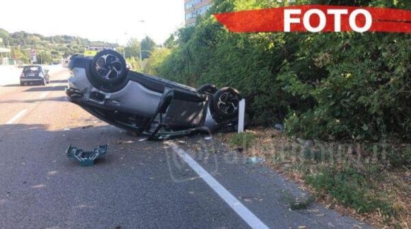 Rimini, auto cappottata sulla superstrada di San Marino