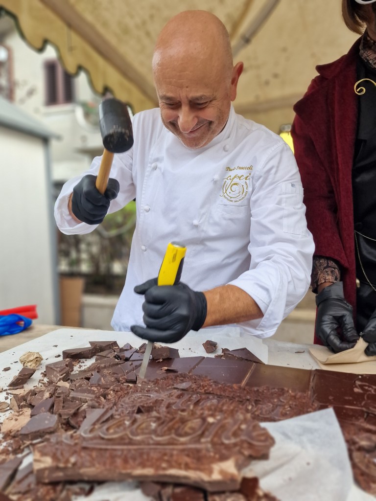 “Una vera e propria opera d’arte da gustare”, l’ha definita la sindaca Daniela Angelini. E proprio come alcune espressioni d’arte contemporanea, questa creazione del Maestro Staccoli era destinata a una durata effimera: in pochi minuti, la scultura di cioccolato è passata dall’essere un’opera da ammirare a un piacere da condividere.