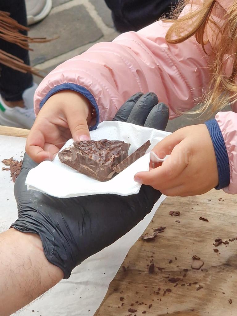 “Una vera e propria opera d’arte da gustare”, l’ha definita la sindaca Daniela Angelini. E proprio come alcune espressioni d’arte contemporanea, questa creazione del Maestro Staccoli era destinata a una durata effimera: in pochi minuti, la scultura di cioccolato è passata dall’essere un’opera da ammirare a un piacere da condividere.