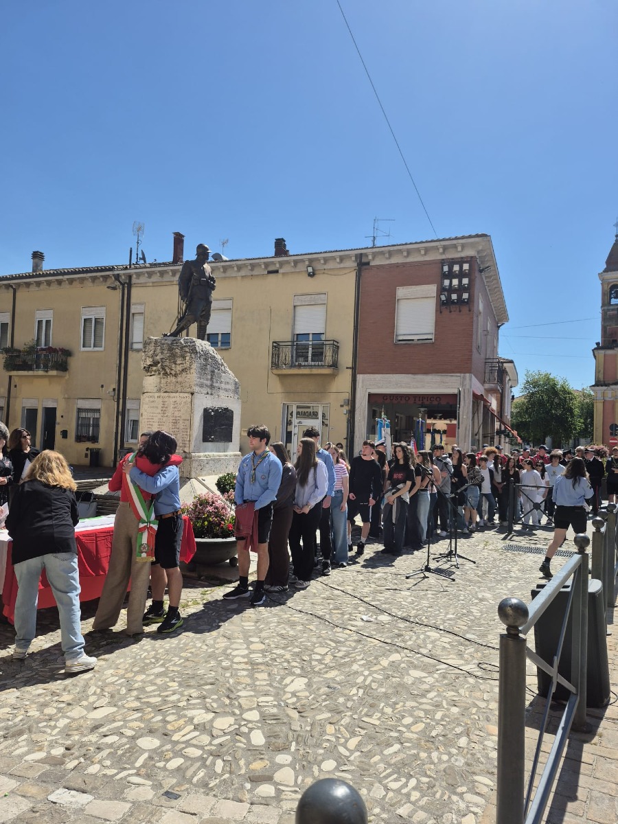 Grazie per essere qui e grazie ai rappresentanti delle forze dell’ordine, ad ANPI, ai rappresentanti delle istituzioni e delle associazioni, alla delegazione di studentesse e studenti dell’Istituto Comprensivo Statale e ai loro insegnanti, al corpo bandistico e a tutte le realtà che rendono la nostra comunità viva, presente e capace di crescere insieme.