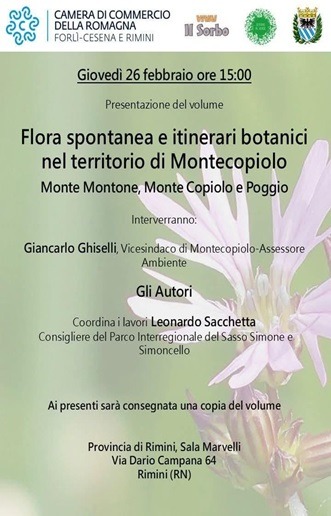 Giovedì 26 febbraio, alle ore 15.00, la Sala Marvelli della Provincia di Rimini ospiterà la presentazione del volume “Flora spontanea e itinerari botanici nel territorio di Montecopiolo – Monte Montone, Monte Copiolo e Poggio”, un lavoro dedicato alla ricchezza botanica del territorio ed ai percorsi naturalistici che lo attraversano.