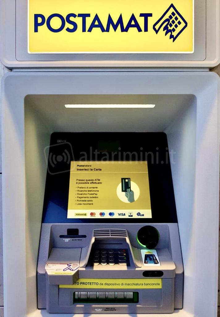 Inoltre, il nuovo ATM Postamat di ultima generazione consente di effettuare operazioni di prelievo di denaro contante, interrogazioni su saldo e lista movimenti, ricariche telefoniche e di carte Postepay, oltre al pagamento delle principali utenze e dei bollettini di conto corrente postale. Può essere utilizzato dai correntisti BancoPosta titolari di carta Postamat-Maestro e dai titolari di carte di credito dei maggiori circuiti internazionali, oltre che dai possessori di carte Postepay.