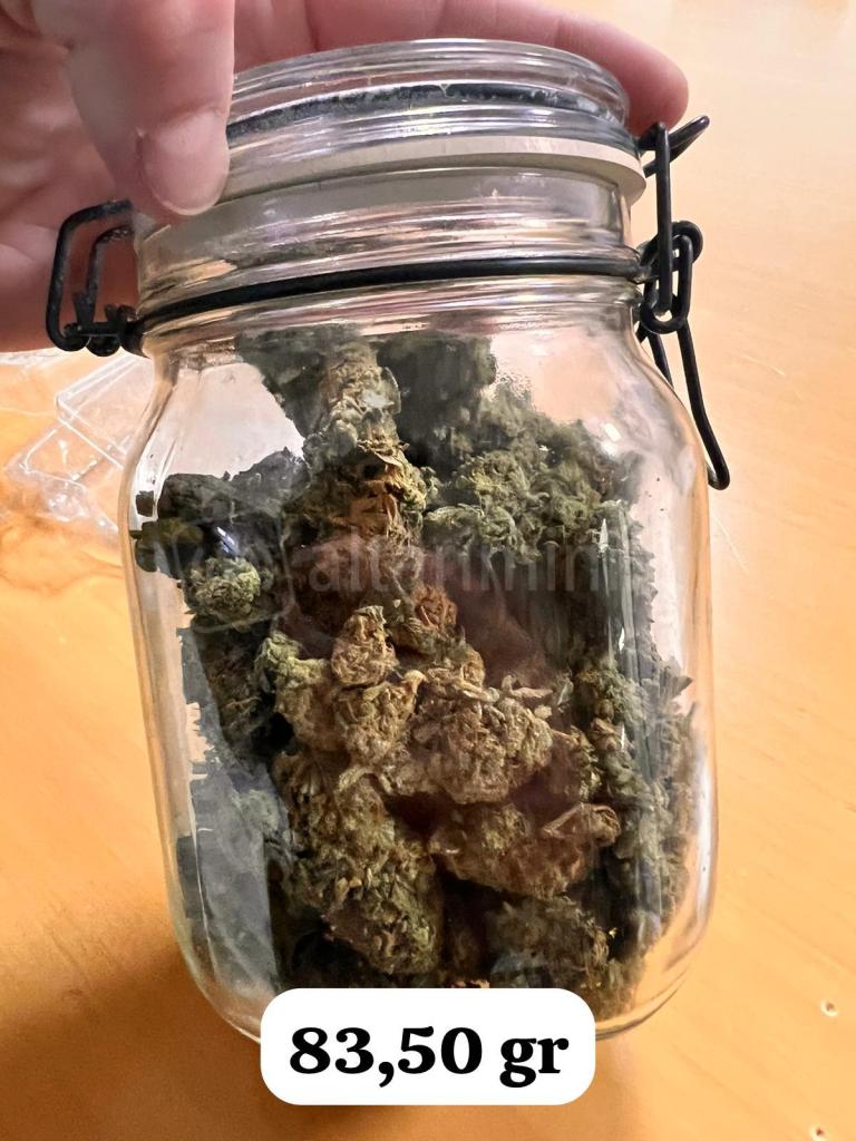 Durante un controllo domiciliare, i poliziotti sono stati attirati da un forte odore di sostanza stupefacente provenire dall’appartamento e ciò ha indotto l’uomo a consegnare spontaneamente due vasetti, con all’interno rispettivamente 132,45 grammi di hashish e 83,50 grammi di marijuana, nonché tutto il materiale per il confezionamento, tra cui un bilancino di precisione e 1300 euro contanti.