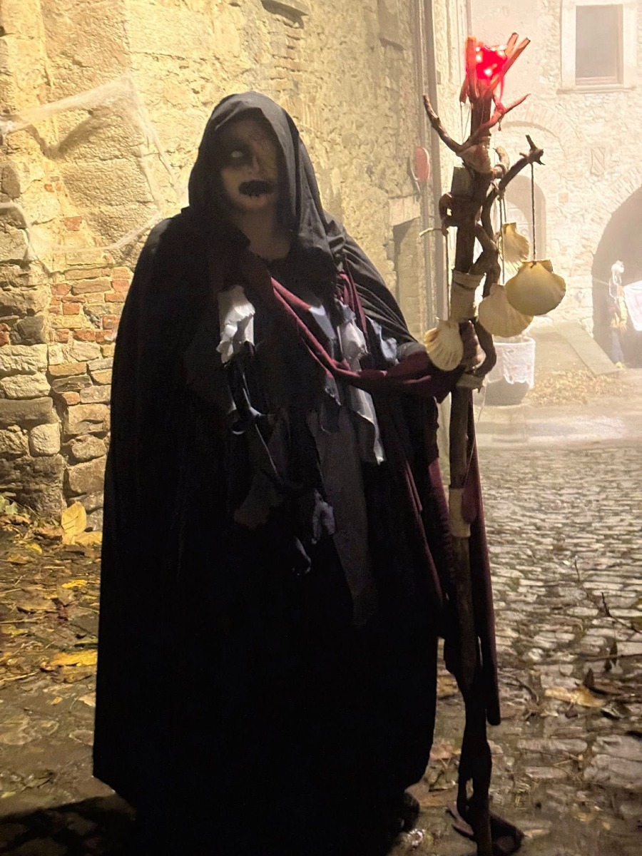 Sotto le Logge, i bambini si sono cimentati nell’intaglio delle zucche, dando vita a originali e spaventose creazioni, seguite da una merenda per tutti i partecipanti. Alle 19 l’atmosfera si è fatta più misteriosa con i “Racconti Paurosi” di Franco Baldoni all’Orto dei Frutti Dimenticati, che hanno affascinato e divertito il pubblico di ogni età. Poi, come da tradizione, le vie del borgo si sono riempite di mostri, streghe e fantasmi per il rito del “Dolcetto o Scherzetto”, tra risate e travestimenti fantasiosi. Alle 20 la festa è proseguita tra animazioni, scenografie spettrali e musica, concludendosi con l'Escape Room e la caccia al tesoro.